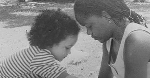 A dark-skinned mom